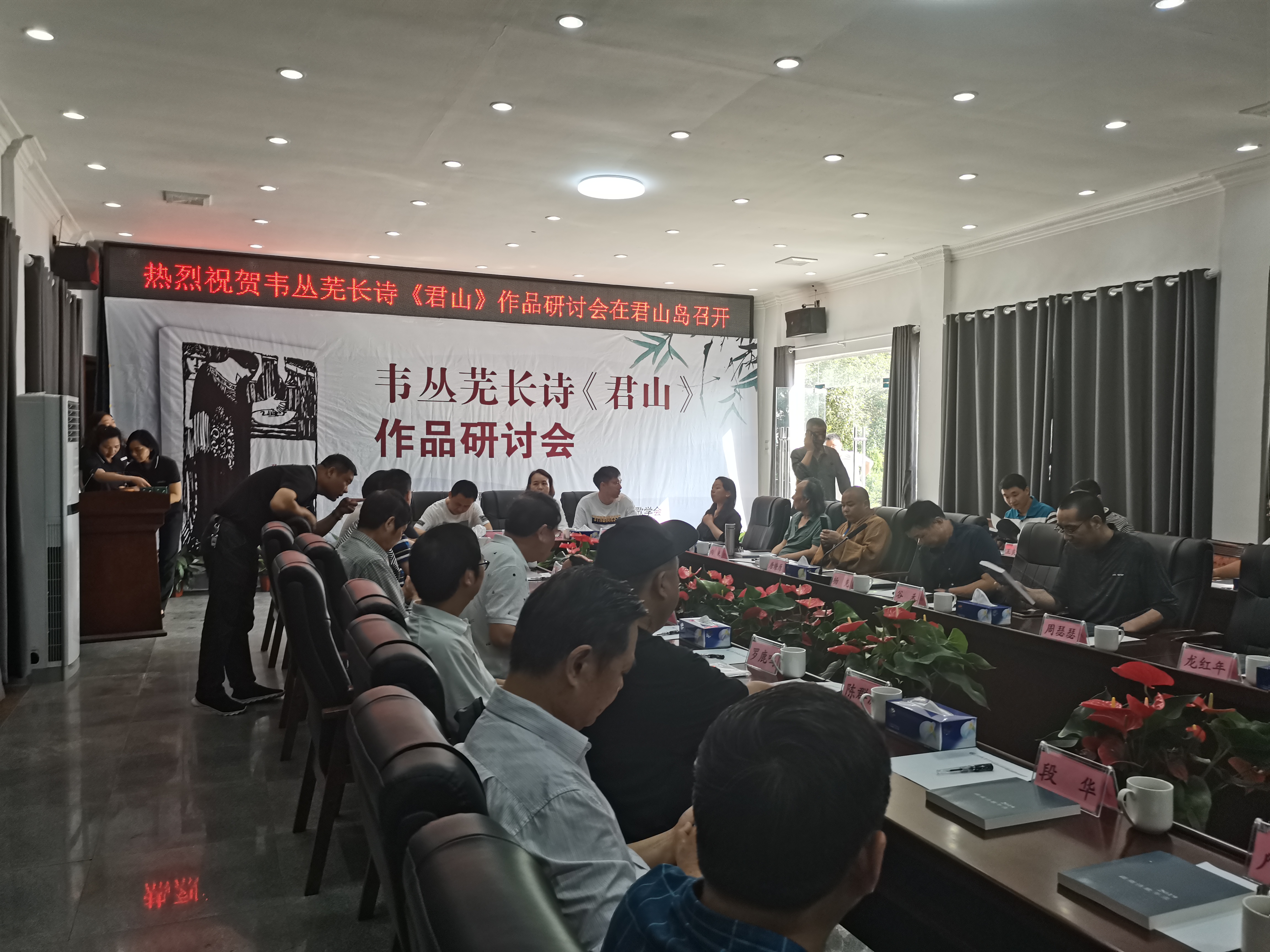 5月23日上午,由湖南省诗歌学会主办,中文学院和君山岛景区、岳阳市诗歌学会联合承办的韦丛芜长诗《君山》作品研讨会在君山岛景区召开。