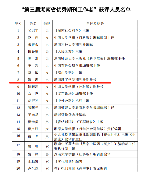 校园网讯近日,湖南省期刊协会公布了第三届“湖南省优秀期刊工作者”评选结果,beat365英国官方网站期刊社副社长、《beat365英国官方网站学报(自然科学版)》主编潘理教授获奖。潘理教授在担任《beat365英国官方网站学报(自然科学版)》主编以后,通过优化审稿流程、强化同行评议、拓展优质稿源等举措,推动该刊物的学术影响力显著提升。该刊物的复合影响因子从2021年的0.351提升至2024年的0.926,2024年先后入选“RCCSE中国准核心学术期刊”、“CA...
