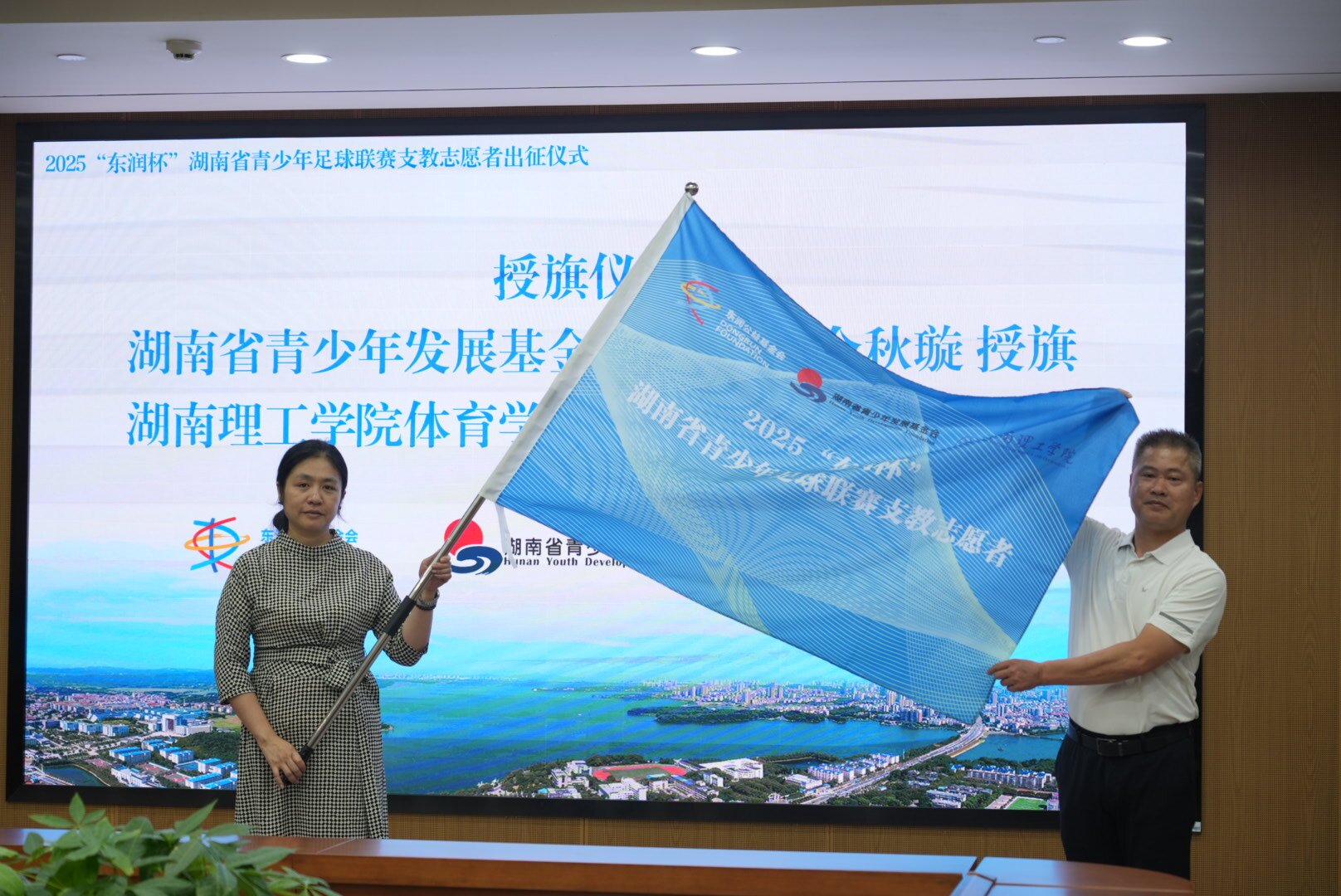 校园网讯 10月10日下午,2025年“东润杯”湖南省青少年足球联赛支教志愿者出征仪式在学校举行。校党委委员、副校长徐振祥,湖南省青少年发展基金会秘书长余秋璇,希望事业部部长喻慕鸿,校团委及体育学院负责人出席出征仪式。启动仪式上,徐振祥代表学校向即将奔赴支教一线的志愿者们表示热烈祝贺,并向湖南省青少年发展基金会致以诚挚的感谢。他表示,学校历来重视体育教育教学,建成了一流的体育场馆设施,承办了多项国家级、...