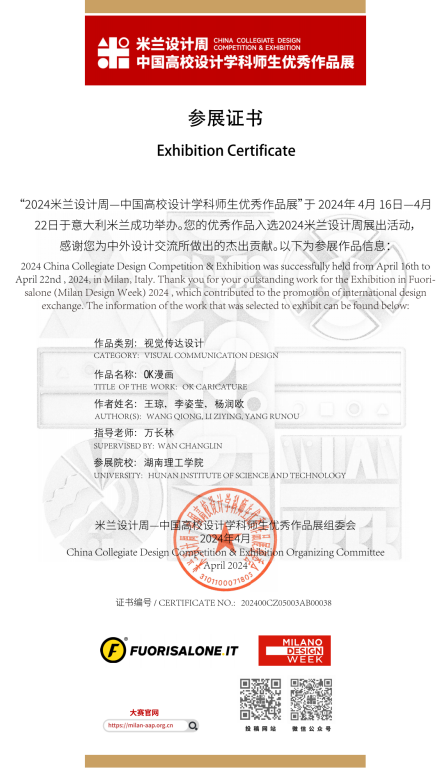 近日,“2024米兰设计周—中国高校设计学科师生优秀作品展”在意大利米兰国际艺术中心展出,美术与设计学院万长林教授指导的《OK漫画》,王珺、袁上杰老师指导的《创意·分享》,刘沙城老师个人创作的《凤纹盖罐》三件设计作品,亮相2024米兰设计周,走上国际舞台。本次精选赴米兰设计周参展的展览作品,由全国29个分赛区从第五至第七届国赛一等奖作品中,推荐具有代表性的200余件优秀作品参展,作品涵盖视觉传达设计、产品设计...