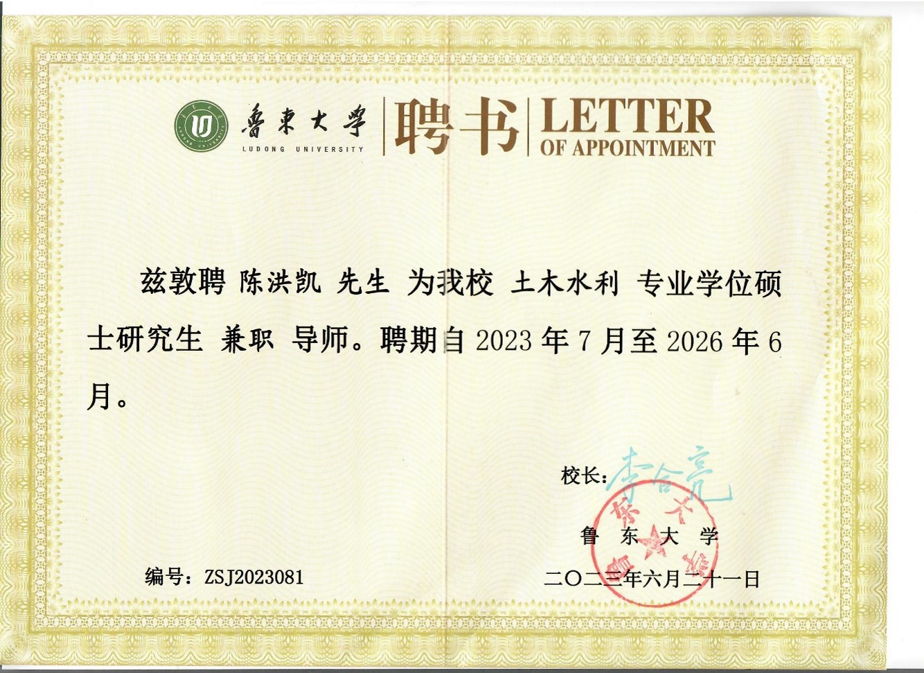 必赢官网俄罗斯自然科学院外籍院士陈洪凯教授受聘鲁东大学土木水利专业硕士生导师
