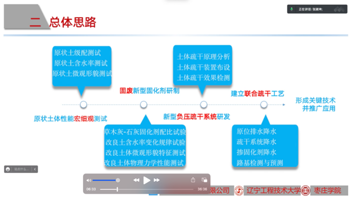 城市地下空间工程教研室张淑坤结合其研究方向做了题为《高含水率粉质黏土路基快速固化改良关键技术及应用示范》的学术报告。报告研究针对有关地区高含水率粉质黏土路基填筑问题,以生物质发电固废草木灰和生石灰研发新型固化剂,并自主研发了高含水率粉质黏土负压疏干系统,可短时间综合降低土体含水率,提高土体抗压强度、可压实性和成型性。技术具有可操作性强、成本低、易于掌握和绿化环保等特点,可以实现短时间内大规模应用,累计创造了显著的经济效益和社会效益。研究成果对公路路基填筑以及国家提倡的绿色可持续发展均具有重要意义,具有良好的经济效益、社会效益和广阔的应用前景。