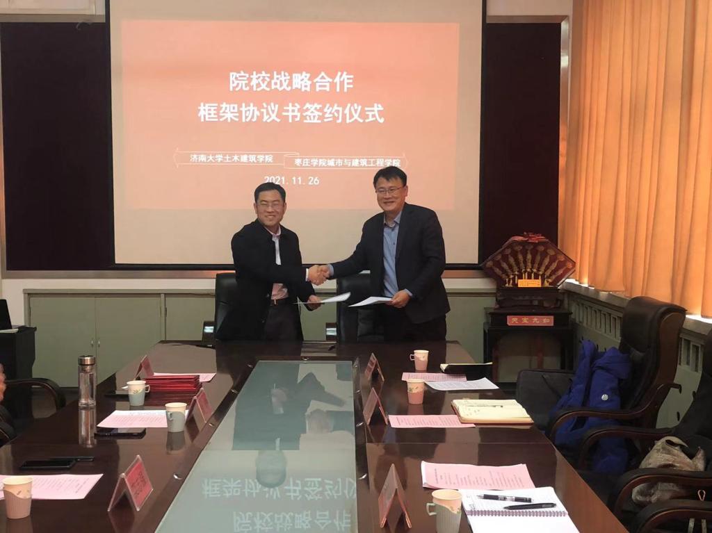 11月26日,必赢国际437官网党委委员、统战部部长、必赢国际437官网院长林勇一行4人赴济南大学土木建筑学院考察学习并签订院校战略合作框架协议。副院长裘娜、院长助理孙启林、给排水专业负责人王昌稳参加了本次签约活动。