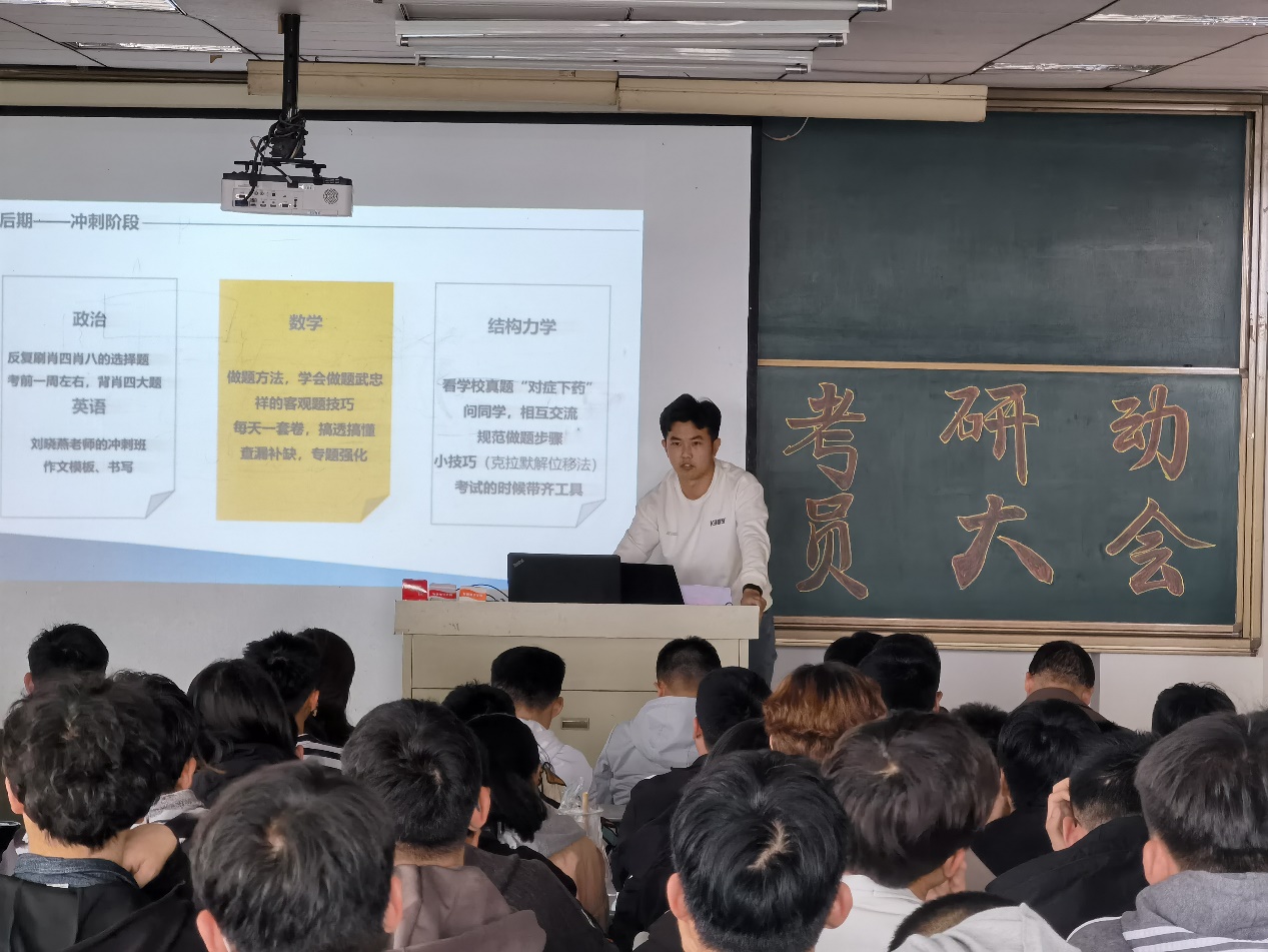 为进一步调动城建学子考研积极性,营造浓郁的考研氛围,解决考研准备阶段的迷茫和困惑,4月14日,必赢国际437官网2022年考研动员大会在理工楼2505教室举行。必赢国际437官网副院长裘娜、考研指导教师代表、2021届优秀学生代表以及2022届学生参加了大会。