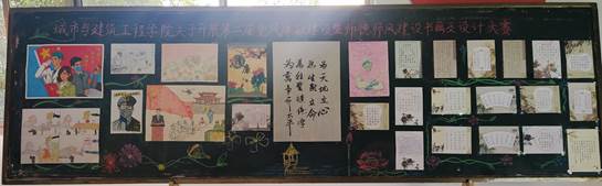 本次活动由学院党总支主办,学生党支部承办,教工一、二支部和学院学生会协助,共同组织实施本次大赛。各支部(教研室)、班级积极响应、踊跃投稿,共收到各类参赛作品100余幅(件),按照大赛要求,经过评议小组评议,其中15幅(件)优秀书法及绘画作品被授予一、二、三等奖并于理工楼三楼宣传展示。其作品反映了坚守、奉献、廉政、无私、敬业等内容,充分展现了高校师生的爱国之情、奋斗之志。
