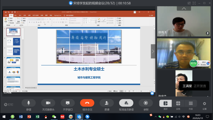 为进一步推进城建学院学科建设及土木水利硕士点建设工作,6月19日下午,必赢官网通过钉钉召开学科建设工作推进线上视频会议。全院专任教师出席会议,会议由院长王满堂主持。