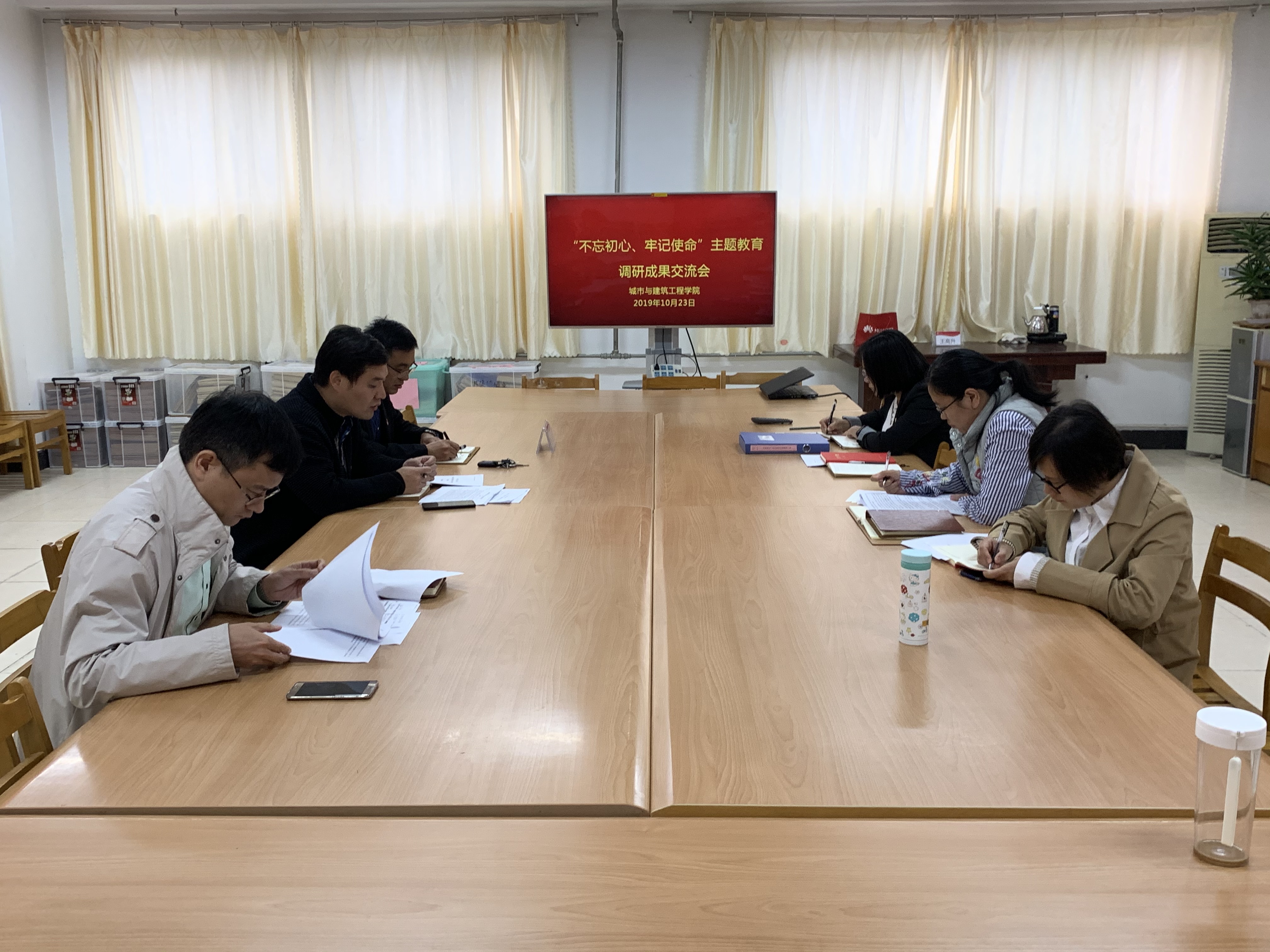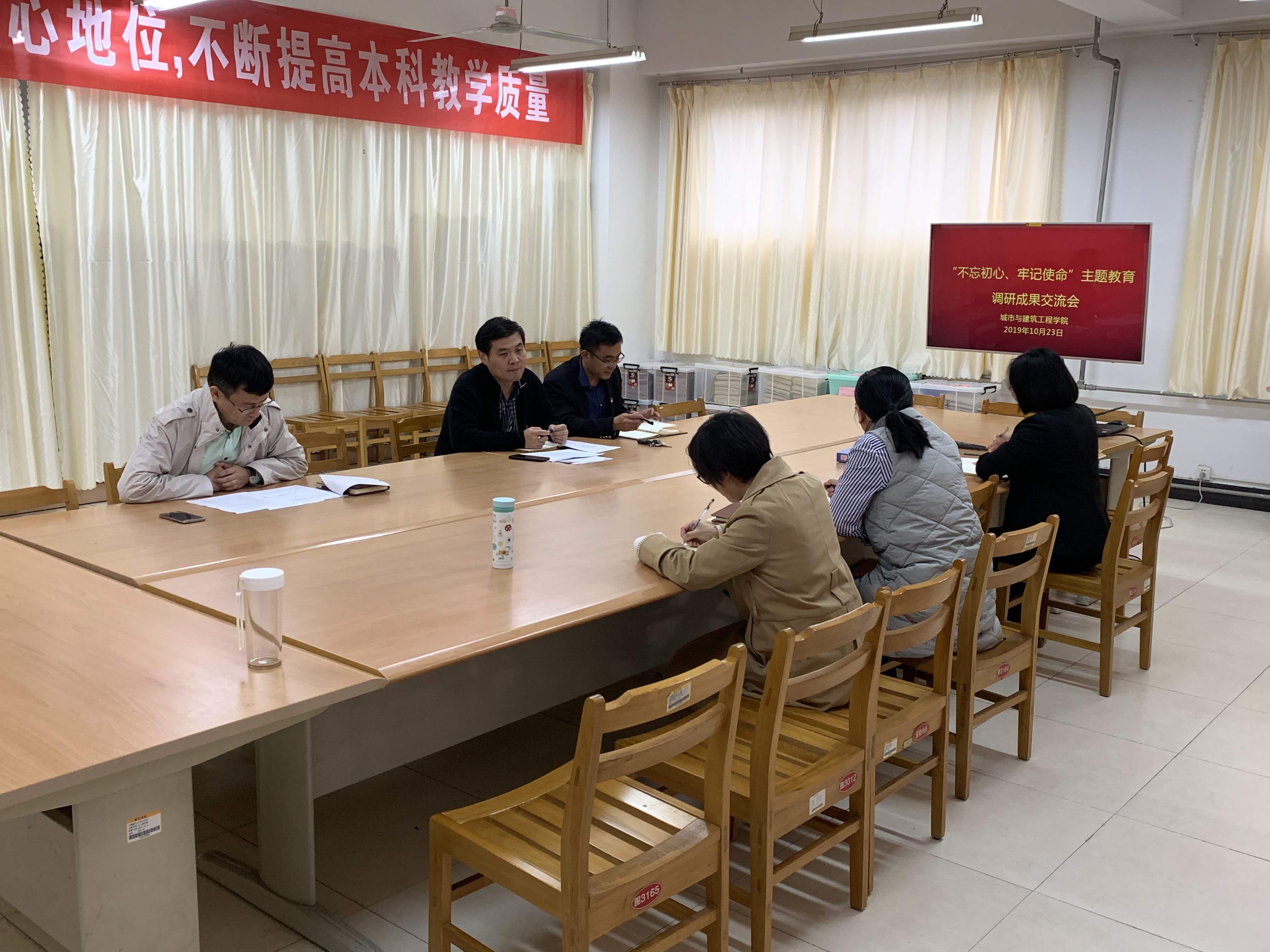 10月23日下午,城建学院在资料室召开“不忘初心、牢记使命” 主题教育调研成果交流会。校第二巡回指导组成员程涛同志到会指导,学院党政班子成员、各支部书记参加会议,会议由城建学院党总支副书记徐海波主持。