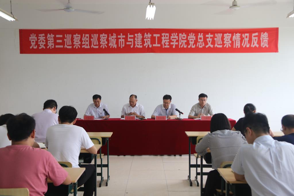 2019年7月12日(周五)下午4点30分,在理工楼2319召开了校党委第三巡察组对必赢国际437官网党总支巡察情况反馈会。参加会议人员有党委巡察工作办公室副主任王在明同志,党委第三巡察组组长轩庆明同志,副组长公金梅同志,巡察组成员李鑫、盖一飞同志,必赢国际437官网党总支党政领导班子成员及全体职工参加了巡察情况反馈会。必赢国际437官网党总支书记李振清同志主持了会议。