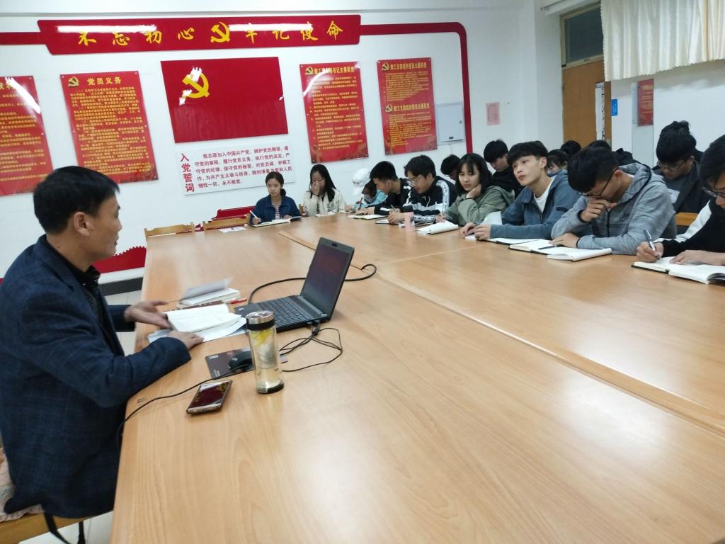 城建学院新学期党课培训于4月中旬正式开班,4月18日晚,学院党总支书记李振清在理工楼2321主讲了《新时代 新使命 新思想 新征程》 党课,本学期全体积极分子参加。