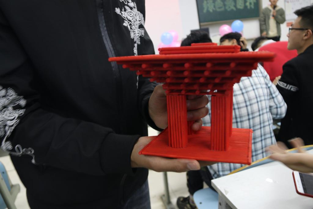 本次活动,首先由各班进行教室、卫生区三分钟展示及五分钟节目表演。这体现了大学生的朝气与活力。接着,进行了令人激动的游戏环节,气氛达到了高潮。游戏过后,进行了17个变废为宝的作品的展示。作品非常的多样。从世博会中国馆的模型到各种各样的小房子、小城堡、还有宿舍模型、宿舍作息表等等。此次活动在轻松愉快的氛围下结束。