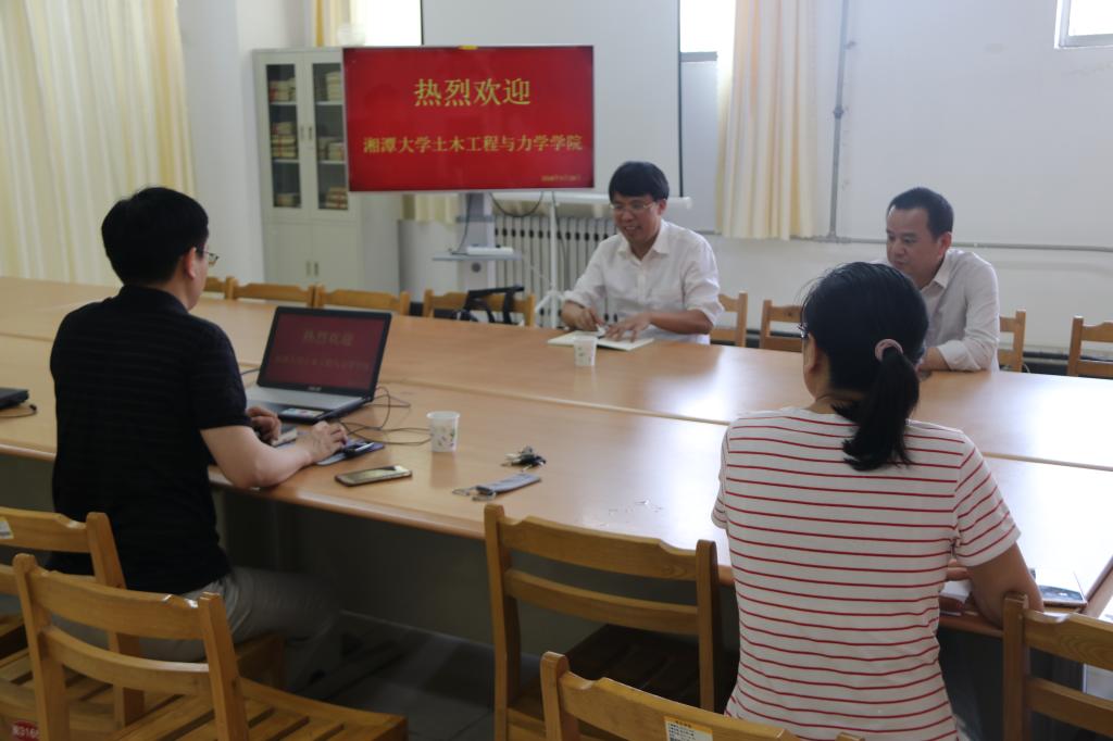 5月18日,湘潭大学土木工程与力学学院院长龙志林教授一行2人来必赢国际437官网考察交流。在必赢国际437官网资料室,龙院长就专业办学定位,近几年的发展情况等问题与学院领导教师进行了交流座谈。随后,龙院长针对行业中若干前沿热门问题为土木工程专业学生,进行了专题讲座。