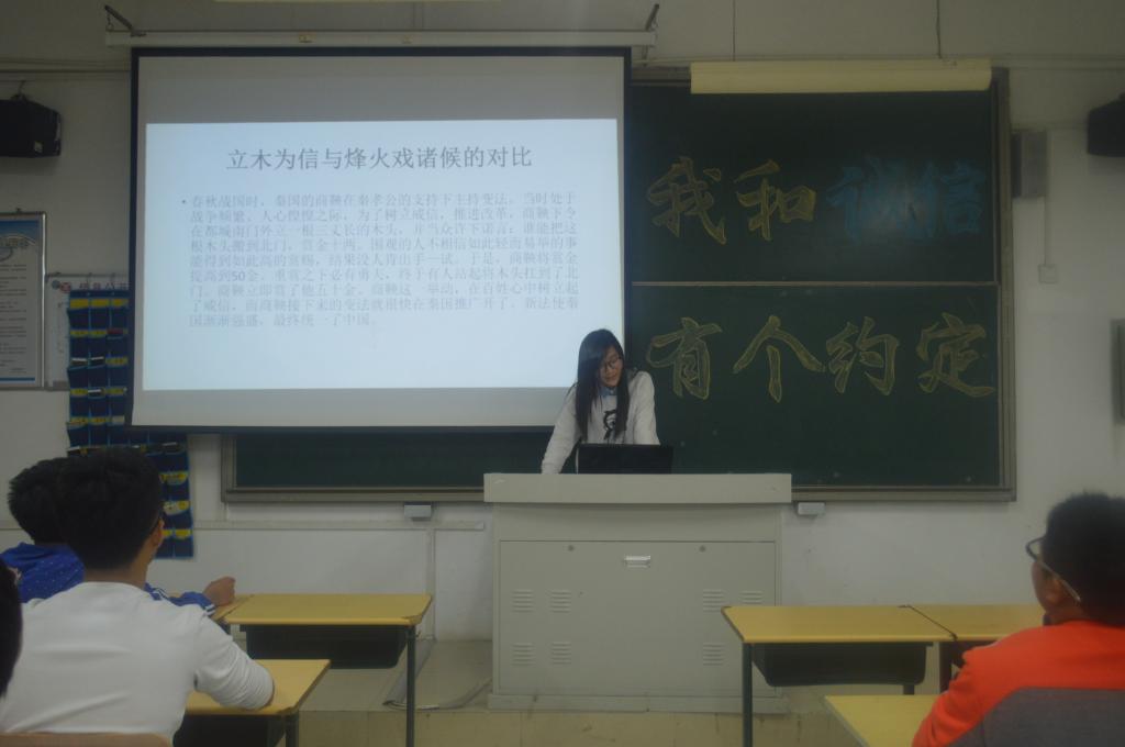 在诚信月活动期间,必赢官网开展了板报宣传、诚信主题班会、演讲比赛、座谈会等系列活动。在宣传板报中,简单的线条和各式的色彩生动形象的表达出了诚信于人的重要性。在主题班会上,组织“诚信为本”的讨论活动和利用PPT展示诚信案例,将诚信教育活动与学风、考风建设相结合。同学们踊跃发言,现场气氛活跃。必赢官网精心准备,组织开展了“诚信立人”的演讲比赛,通过与他人分享诚信故事,从而意识到诚信的重要意义。