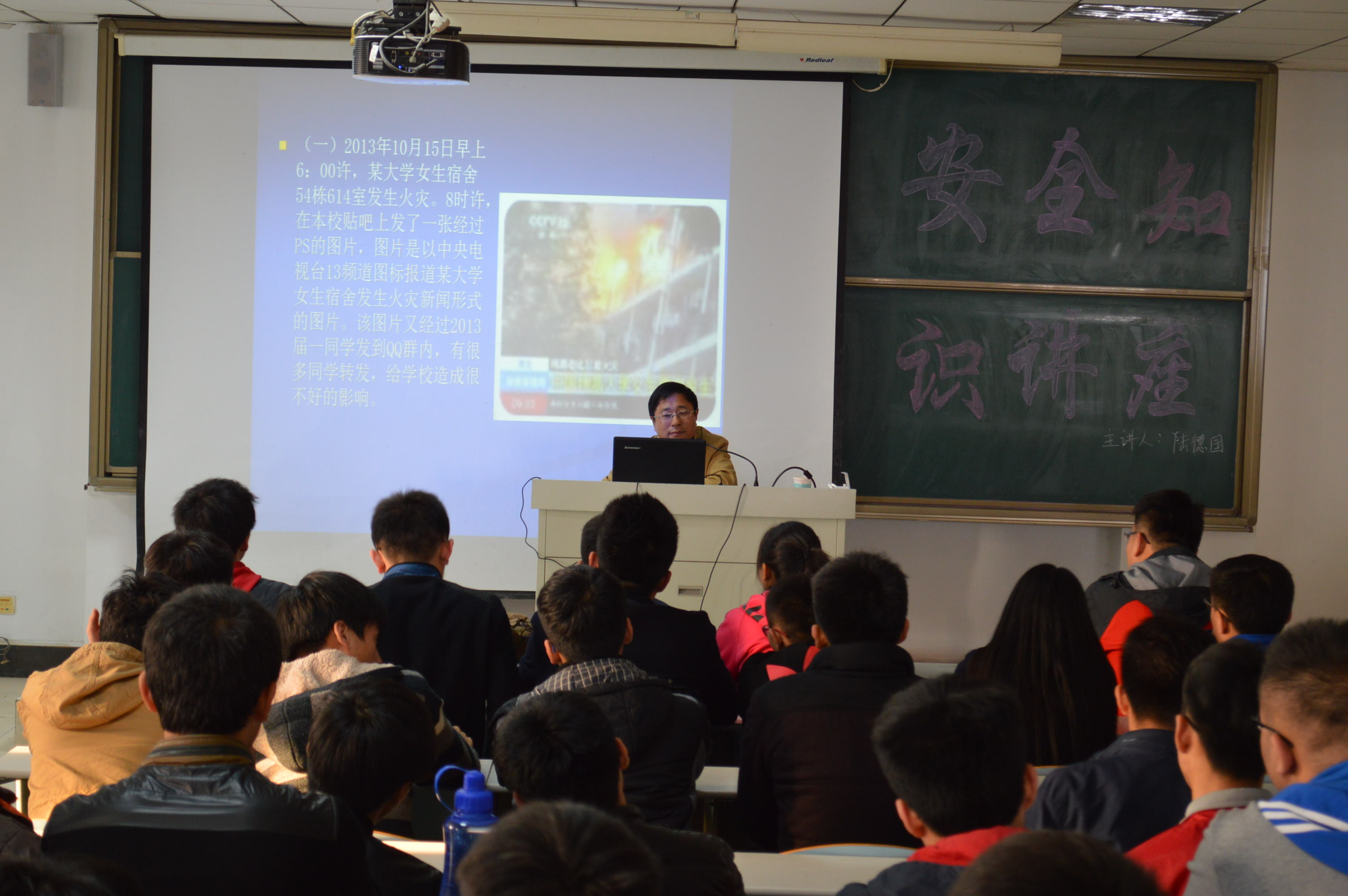 下午,必赢国际437官网邀请音乐学院党总支书记陆德国,在理工楼2505举办安全知识讲座,讲座由城建学院负责人主持,近200名师生参加了报告会。