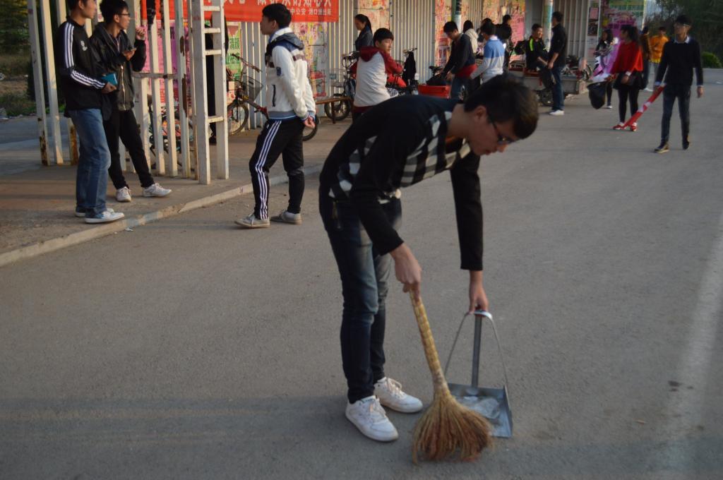 同学清扫地面垃圾