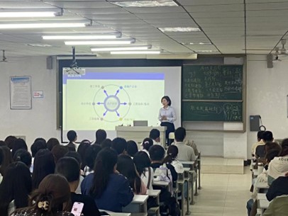 副院长裘娜介绍了学院的发展历史、人才培养特色、专业学科建设成就、优秀毕业生及就业前景。她希望同学们能尽快完成角色转变,正确树立人生目标,合理规划大学生活,自立自强,做到学有所成,做有所为。