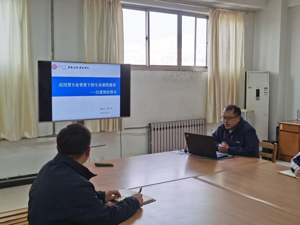 2023年3月15日下午,城建学院在资料室举行2023年度第二期教学与科研论坛,主讲人为贾广印,主讲题目为应用型专业背景下的专业课程建设—以建筑给排水为例,水污染控制科研小组全体成员及其他老师参加了本次论坛。