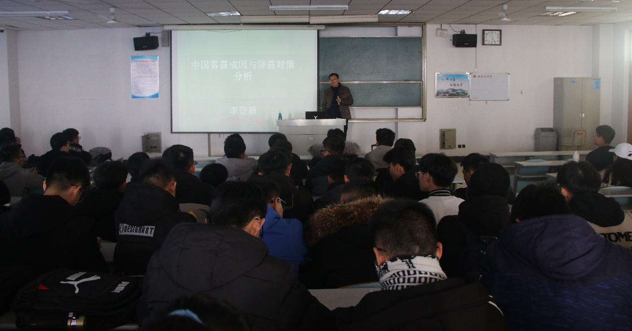 上午10点半,在理工楼2305室,李登新教授为城建学院师生作了题为“中国雾霾成因与降霾对策分析”的学术报告。报告会由王满堂院长主持,给排水科学与工程专业各年级本科生聆听了精彩的学术讲座。报告中,李登新教授根据自己多年在高等学校从事教学科研工作经历和自己创办企业并担任董事长的经验,为大家详细归纳了我国雾霾成因,借助大量的数据并结合具体事件,提出了自己的降霾对策。此次报告会贴近生活实际,开拓了学生的思路,拓宽了学生的眼界,增强了学生的专业自信。