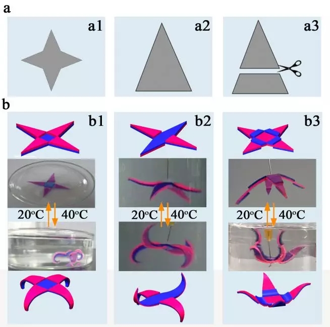 越来越多的证据表明,材料的功能受到其形状和尺寸的显著影响。据报道圆盘状种植体比球形种植体具有更高的酶活性和细胞反应。而水凝胶是一种具有强大渗透力的物质,被视为细胞的理想繁衍地,在生物医学及组织工程中具有广泛的应用。因此,构建形状和尺寸可控的3D水凝胶结构在工程和生物医学领域具有重要意义。尽管已有很多关于构建三维水凝胶的研究,但三维结构一旦成形很难再分离,限制了此类智能水凝胶的循环利用,仍然缺少一种简单、便捷、可逆的构建三维水凝胶结构的方法。