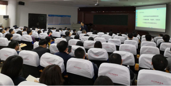 吴军其教授围绕“教学设计”、“教学导入”、“呈现方式”、“活动组织”、“学习评价”、“课堂小结”六个方面向与会教师分享了他的课堂教学理念。他指出,课堂教学要秉持着学生为发展中心的理念,从规范的角度出发,明确完整的目标。吴军其向大家介绍了叶圣陶先生“教学有法,教无定法,贵在得法”的教学观点,课堂教学需要用多种教学模式结合,形式与内容缺一不可,在达到教学目标的前提下,教师还要做到因材施教,激起学生的学习兴趣,提高课堂教学效率。吴军其还就如何做好教学设计与老师们进行案例分析与交流。