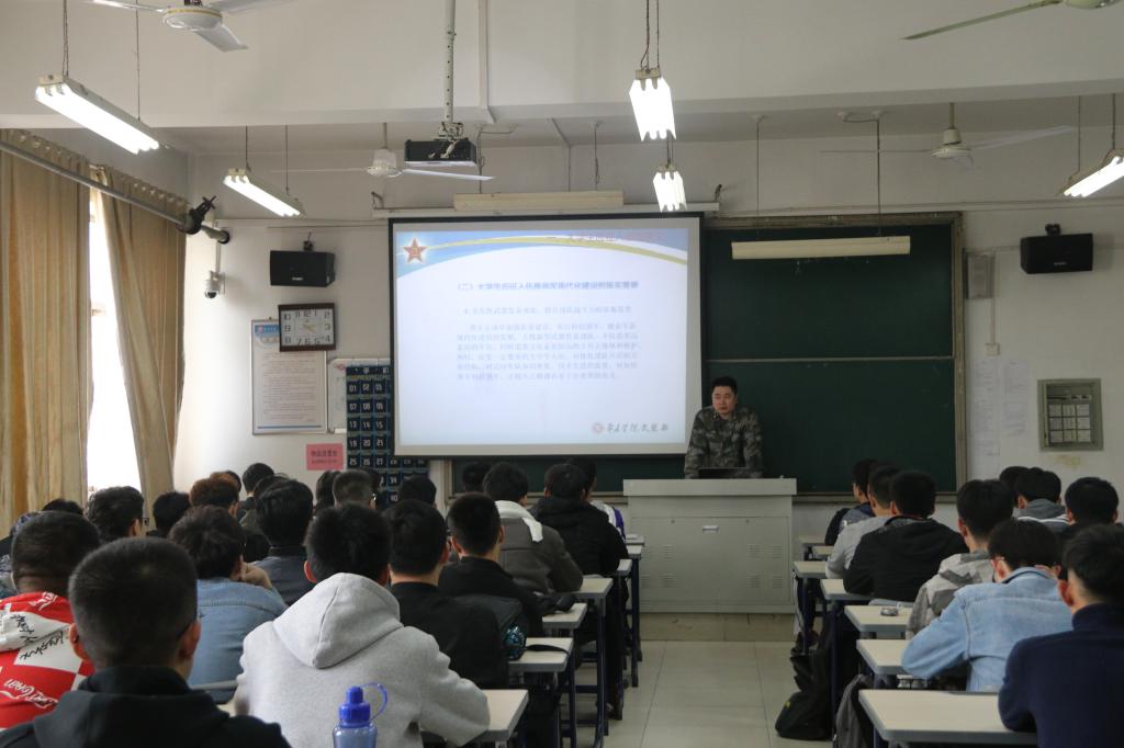 首先,盖老师通过播放征兵宣传片视频,向同学们介绍了征兵工作的背景和国防建设的重要意义。随后,盖老师向同学们全面讲解了大学生当兵入伍的相关政策及报名参军的流程,鼓励有入伍意向的同学积极询问和了解相关信息。最后,他鼓励大家要敢于有梦、敢于追梦、敢于圆梦,让青春在军营的历练中、在为祖国的奉献中闪光,号召同学们积极应征入伍,到部队去锻炼自己,成就自己。