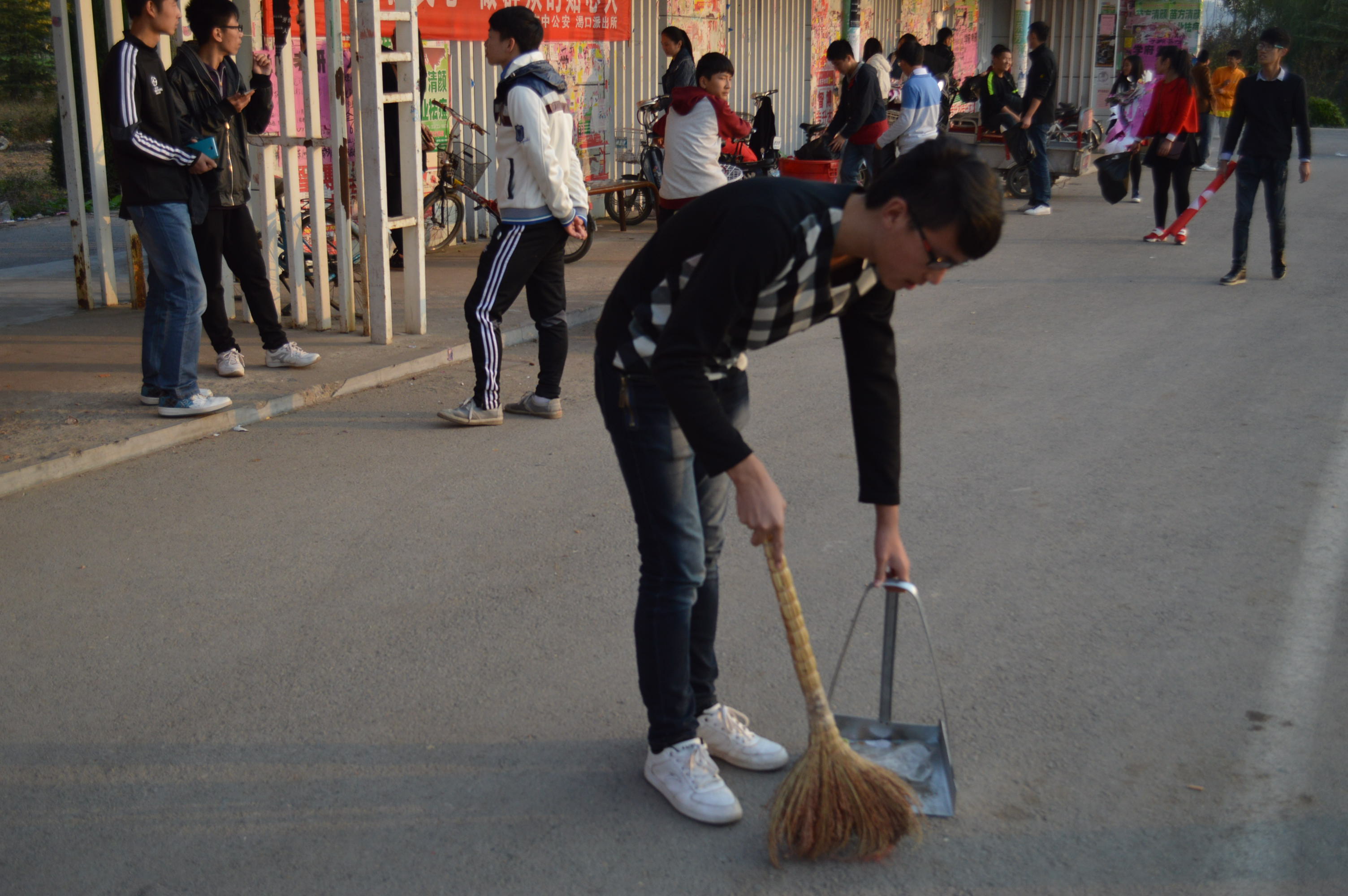 同学们清理地面垃圾