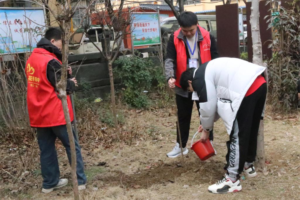 3月6日下午,学院学雷锋志愿服务队来到枣庄市市中区中心街街道薛庄社区开展学雷锋义务植树活动,用实际行动履行植树义务,践行绿色发展理念。植树现场,身穿红马甲的志愿者们个个热情洋溢、干劲十足,挥锹挖坑、扶树填土、提水浇树……呈现出一派热火朝天的劳动景象。