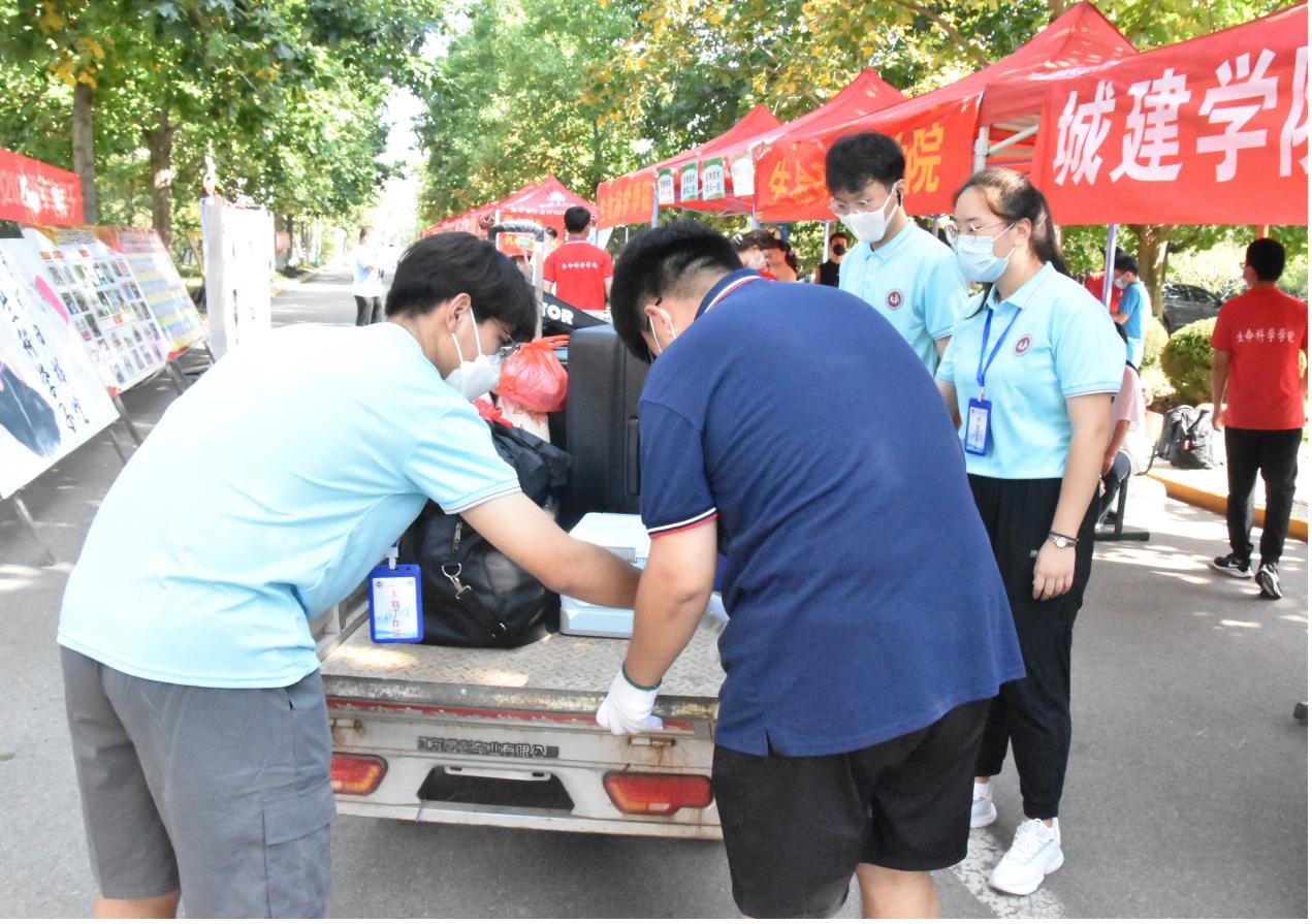 本次省外新生迎接工作主要分为建立新生报到点、核查身份信息、行李搬运与宿舍引导三部分。早6:45学生会成员集合完毕,完善迎新工作点布置工作。7:20迎新服务队人员集合完毕,分别在新生报到点为师弟师妹办理入学手续,在宿舍接应处转运行李,在迎新通道跟拍记录,在新生宿舍区维持秩序。由于必赢官网新生接待处据宿舍较远,新生分别由师哥师姐引领入舍,行李根据数量合理安排车运或人运。路途遥远,人员紧张,多次往返,累却充实,但作为学生会成员,为学生服务更是大家义不容辞的责任与义务。