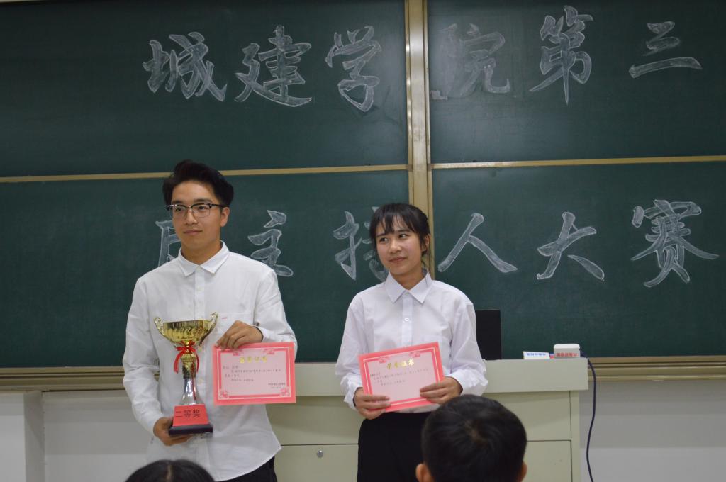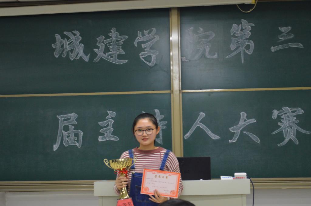 比赛伊始,各位选手轮流上台模拟主持,单人双人可自由组合,他们通过迎新晚会、中秋贺词、近代诗词等朗诵内容和形式,展现出了个人独特的精神风貌。评委通过提问“选手晚会时突发情况应怎样做”等问题,以此来考验选手的临场应变能力和心理素质。比赛进入了紧张的复赛阶段,各位选手成熟稳重、意气风发,彰显大学生别样风采,歌声的渲染更是将比赛推向了高潮。最后,时甜甜凭借过硬的口才和稳定的发挥从众多选手中脱颖而出,夺得本次大赛的第一名。