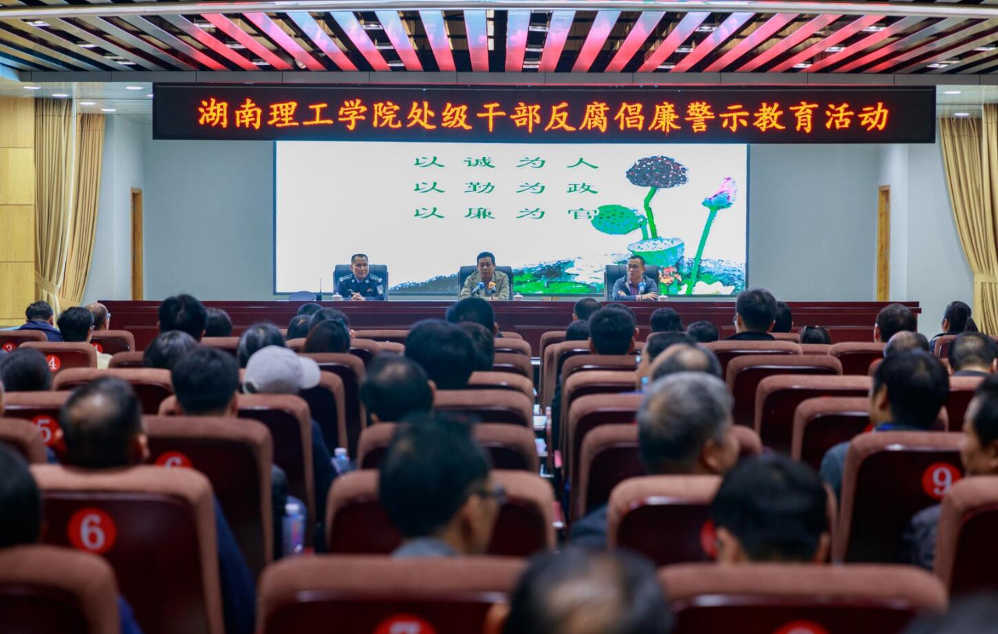 为深入学习贯彻党的十九大关于全面从严治党的要求,进一步筑牢全校领导干部拒腐防变的思想防线、提高廉洁自律和遵纪守法思想意识,10月16日,学校纪委组织副处级以上领导干部及部分科级干部赴岳阳市反腐倡廉警示教育基地开展警示教育活动。全体在家校领导班子成员参加活动。