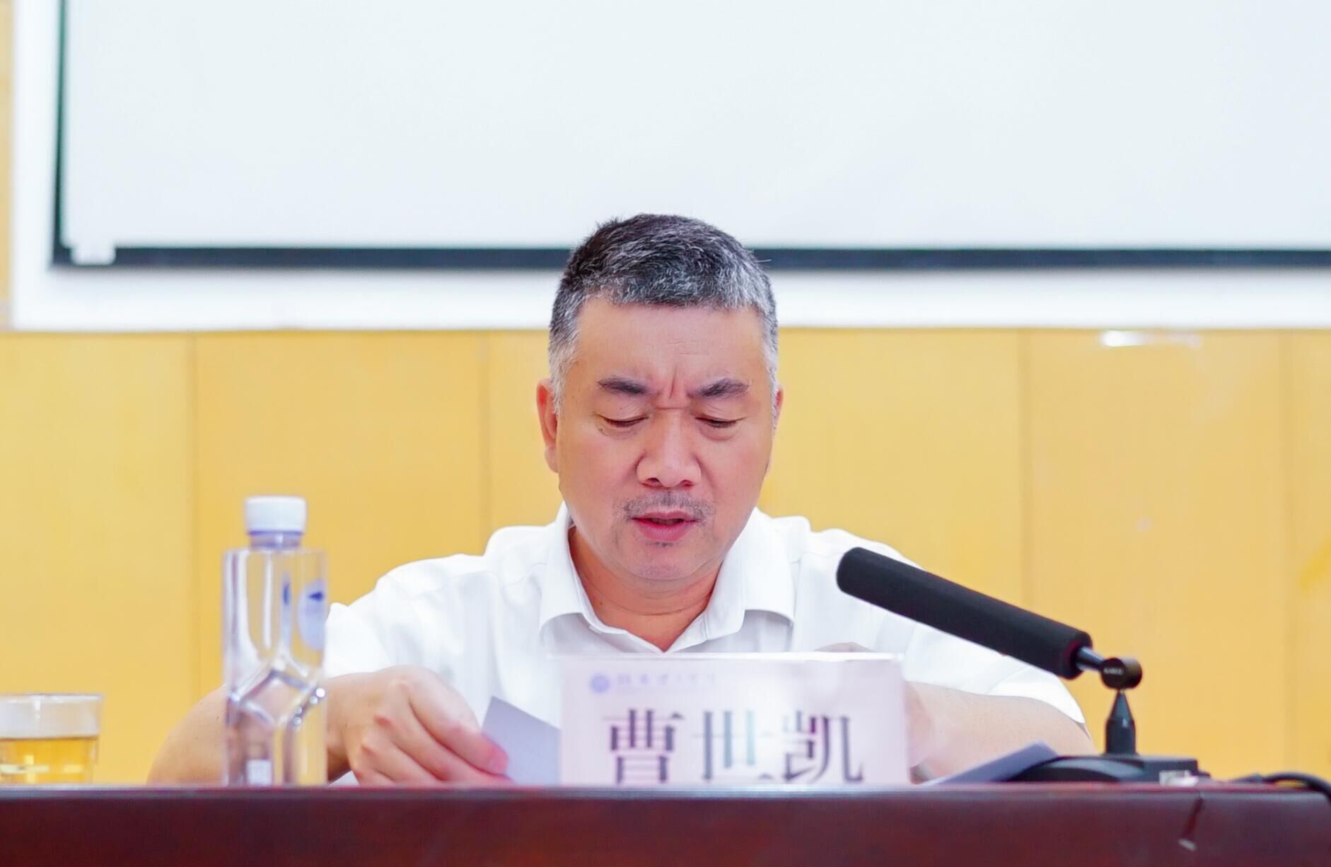 “办好中国的事情,关键在党要管党,从严治党。”曹世凯强调,全面从严治党,一是要从根本上解决主体责任缺失、监督责任缺位、管党治党宽松软的问题,把强化党内监督作为党的建设重要基础性工程,使监督的制度优势充分释放出来;二是要把思想政治建设摆在首位,营造风清气正的政治生态;三是要处理好公与私、人与人、权力与义务、个人与组织的四大关系。他提出六点从严治党的要求:一是方法论分清轻重;二是逐步实现标本兼治;三是从实践中来到实践中去、循环往复;四是保持定力,不搞一阵风、不搞运动;五是注重顶层设计但不拘于顶层设计;六是坚持群众路线。曹世凯指出,办好中国的事情,关键在从严治党;办好学校的事情,关键在从严治校。
