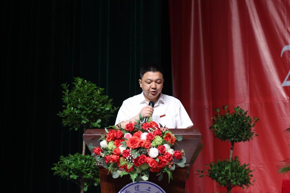 毕业生代表经管系姚孟可同学、在校学生代表外语系朱蕊同学、教师代表刘康兴老师先后在典礼上发言。